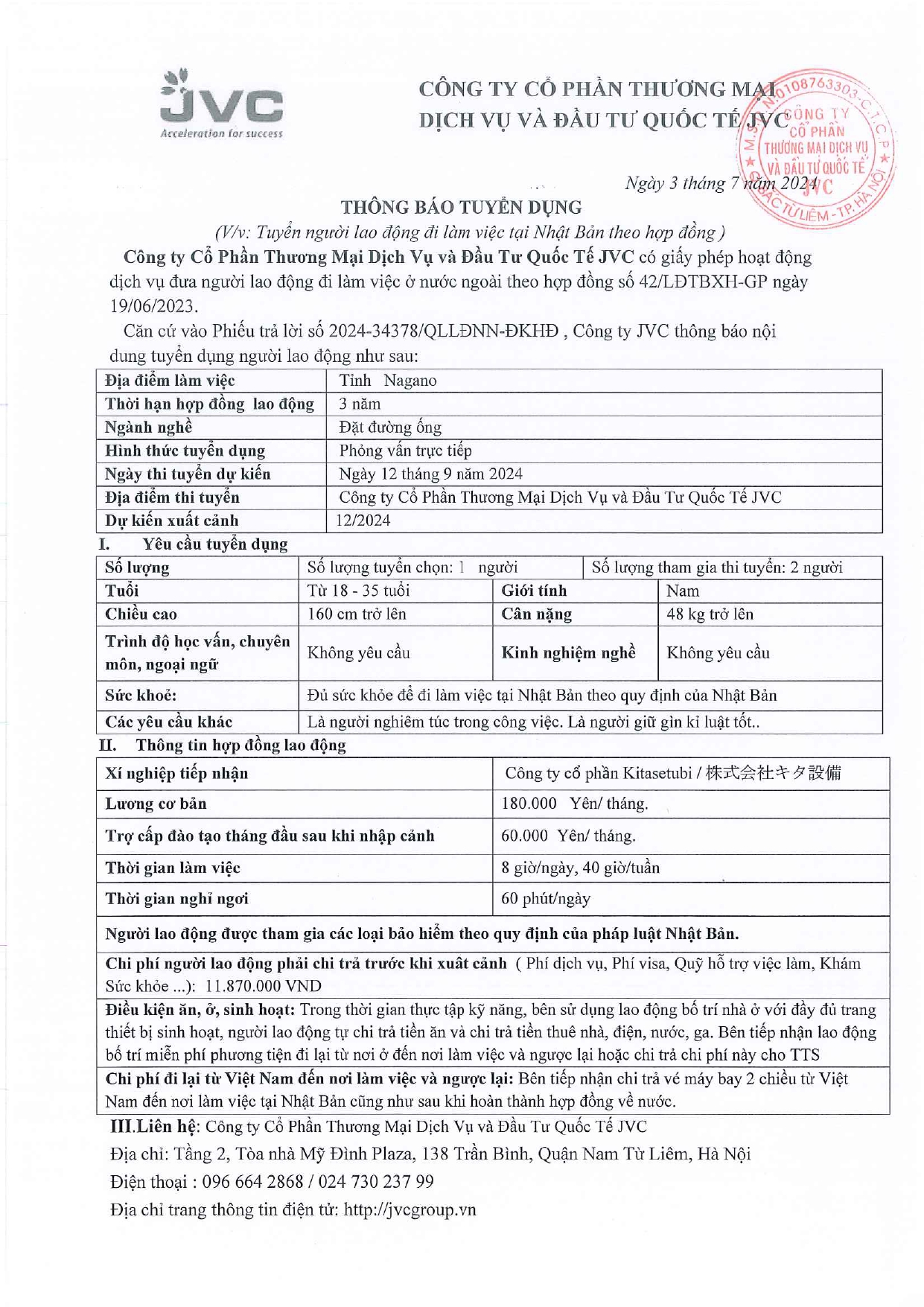 Địa điểm thi tuyển: Công ty CP Thương Mại Dịch Vụ và Đầu Tư Quốc Tế JVC
